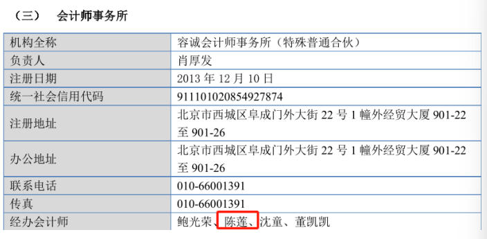 另一方面,百甲科技上市时的签字注册会计师陈莲,存在违规行为。据招股书,百甲科技上市的审计机构为为容诚会计师事务所(特殊普通合伙),签字注册会计师为鲍光荣、陈莲、沈童、董凯凯。